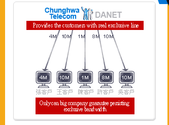 | It is very important for the host manufacturers to choose the telecom companies! 80% of the Taiwan netizens are of HiNet, so the best choise is the product and service put in the machine room of HiNet. By doing so, most of the netizens will enjoy the fastest speed when connecting you host in Chunghwa Telecom. |