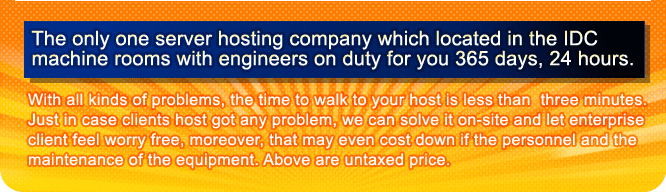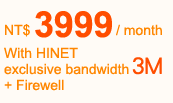 Customers can choose the bandwidth :10M/2M or exclusive 1M, 100% Chunghwa Telecom HiNet line. "One-line to the end" sole green line from the source of the Chunghwa Telecom directly connecting to the NIC device of your host, without any middle modem or routers, we provide a fixed IP, with no restriction of flow. |